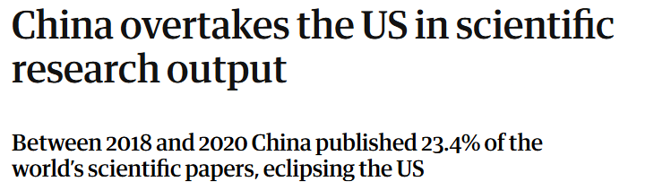 - China overtook the United States in scientific publication output in 2016 and produced 23% of global research papers by 2022.