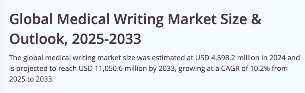The global medical writing market is already worth billions and is expected to grow significantly by 2033.