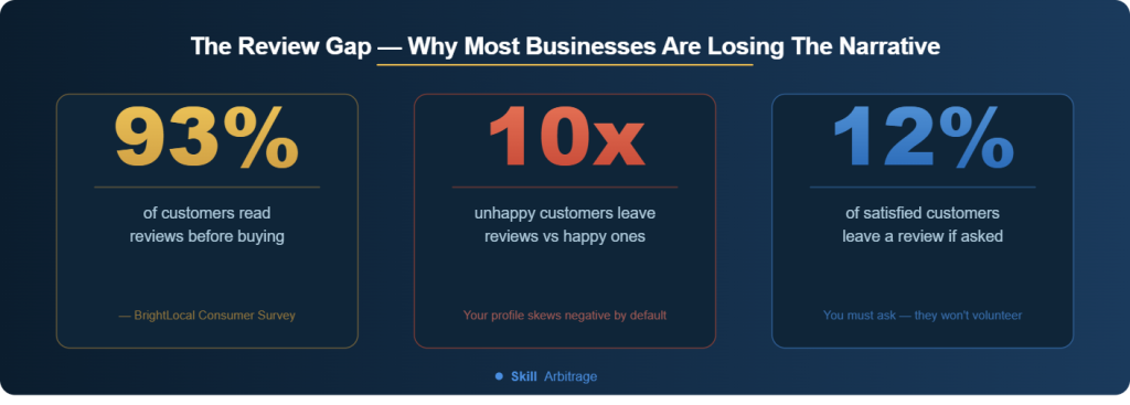 Here’s a number that should stop every business owner in their tracks: 93% of customers read online reviews before making a purchase decision. Not some. Not most. 93%.