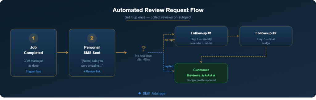 The fastest win for any local service business is a simple automation: trigger a review request text the moment a job is completed.