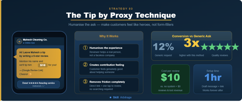 “Hi! Leave our service provider a tip by writing a 5-star review. His name is Mahesh. Mention his name in your review and we’ll tip him $10 on your behalf!”
