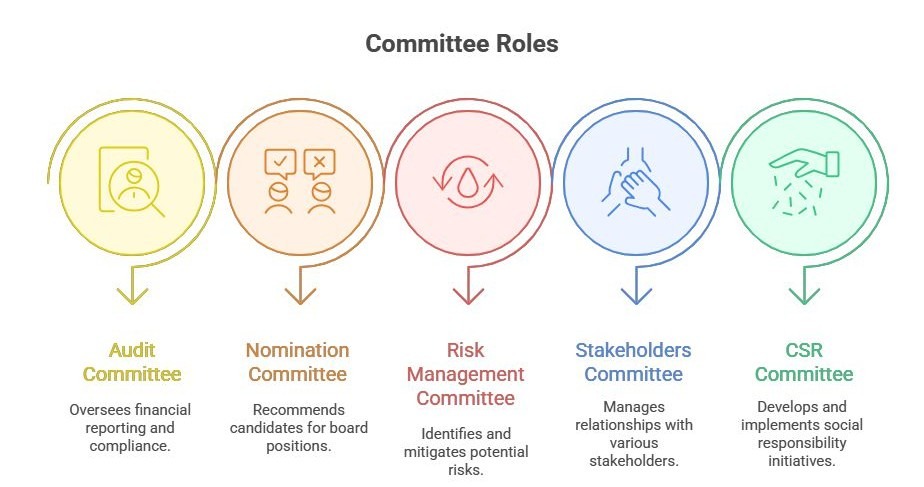 Independent directors must form at least two-thirds of the Audit Committee and at least half of the Nomination & Remuneration Committee. They serve on CSR, Risk Management, and Stakeholders’ Relationship Committees, providing independent oversight of financial reporting, executive compensation, social responsibility, and stakeholder grievances.