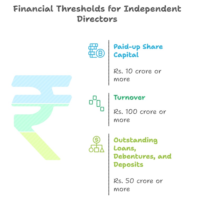 - hold securities or interests in the company or its group entities exceeding a face value of ₹50 lakh or 2% of paid-up capital, whichever is higher;