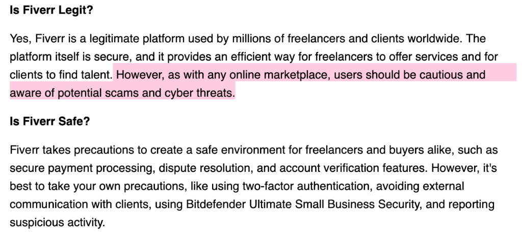 For example, let’s take Fiverr: