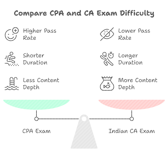 Indian professionals often frame CPA difficulty relative to the CA exam they know well. This comparison helps contextualize the CPA challenge and informs realistic expectations. Both credentials demand significant commitment, but they test different competencies through different structures over vastly different timeframes.