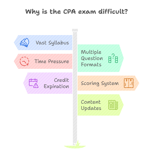 Understanding what makes the CPA exam challenging helps you target your preparation effectively. The difficulty does not come from any single factor but rather from a combination of elements that compound each other. Candidates who recognize these factors early can develop strategies to address each one systematically.