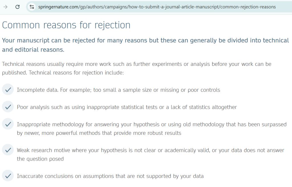 Top journals often have rejection rates above 80–90%. Even strong studies fail due to: