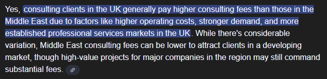 UK clients typically pay more than Middle East clients due to economic differences.