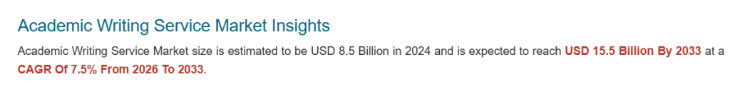 The global academic writing services market is projected to grow significantly, from USD 3 billion in 2026 to USD 5 billion by 2033. Agencies such as Cactus Communications and Enago serve thousands of global clients and consistently hire freelance writers for a variety of academic tasks.