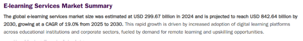 The global e-learning market is projected to grow from ~$300 billion (2024) to over $800 billion by 2030.