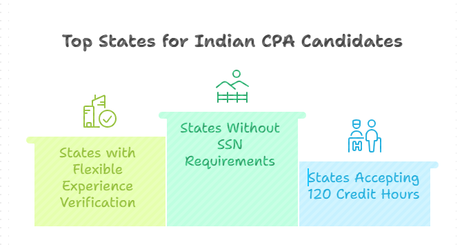 Based on current requirements and feedback from Indian CPA candidates, several states consistently emerge as favorable options for international applicants. These states offer combinations of accessible requirements that align with the typical Indian candidate’s situation.