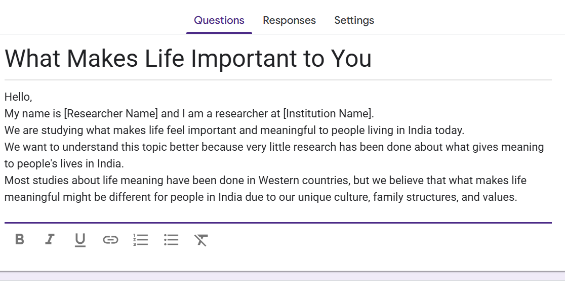 Bonus: Use AI to translate the questionnaire into Hindi, Bengali, Gujarati, Marathi, Tamil, Malayalam, or Telugu to reach India’s multilingual population accurately.