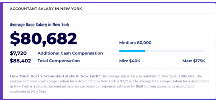 - Average salaries in New York are very high, with accountants earning significant sums. However, it’s important to compare this with the salary structure in India.